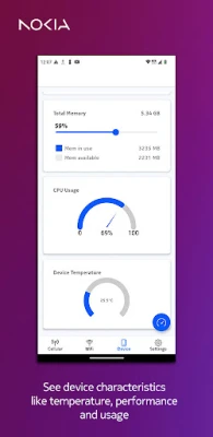 When connected to the Nokia Network Digital Twin server, the application alerts the user on poor device experience, shows historical view of hot spots / cold spots. Allows the user to run tests to troubleshoot device and / or network bottlenecks.