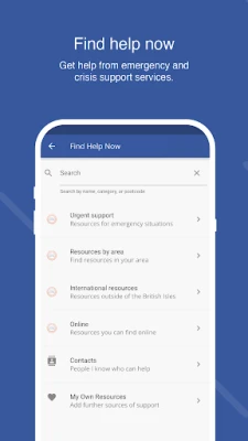• Find Help Now - Quick access to a large database of UK national and local crisis support, and online support services.